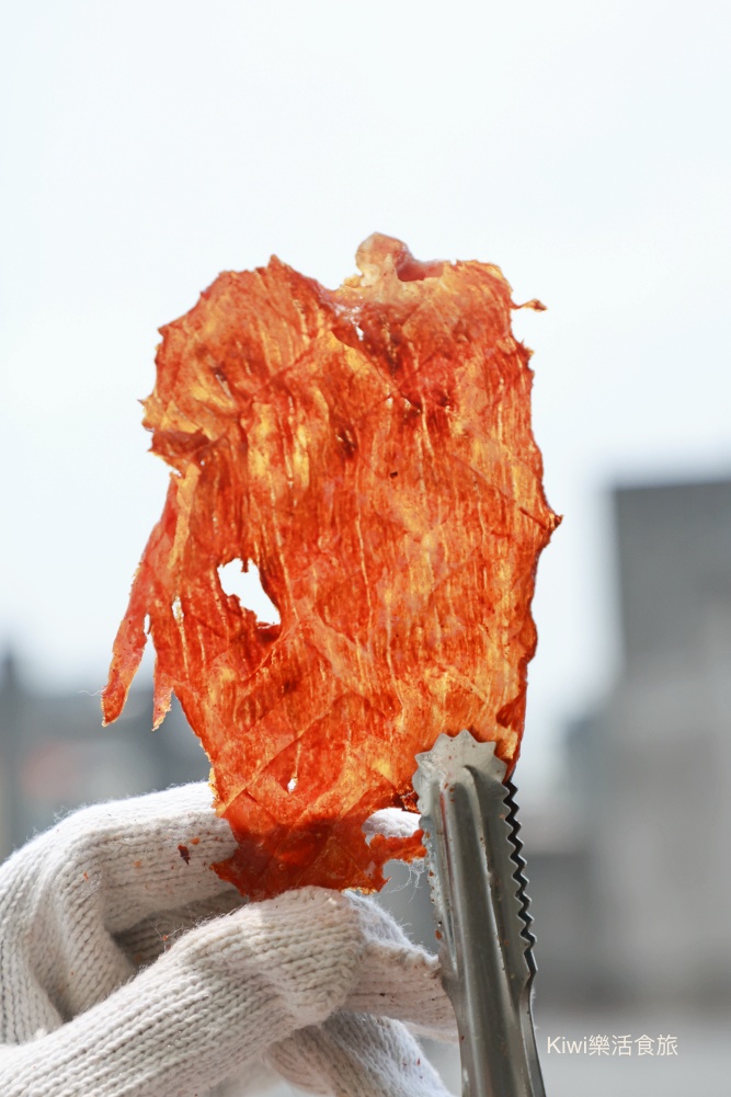 接著就是以適度的火喉燒烤成薄薄的肉乾,完全就是很繁瑣,完全就是要經過這些程序才能出爐。