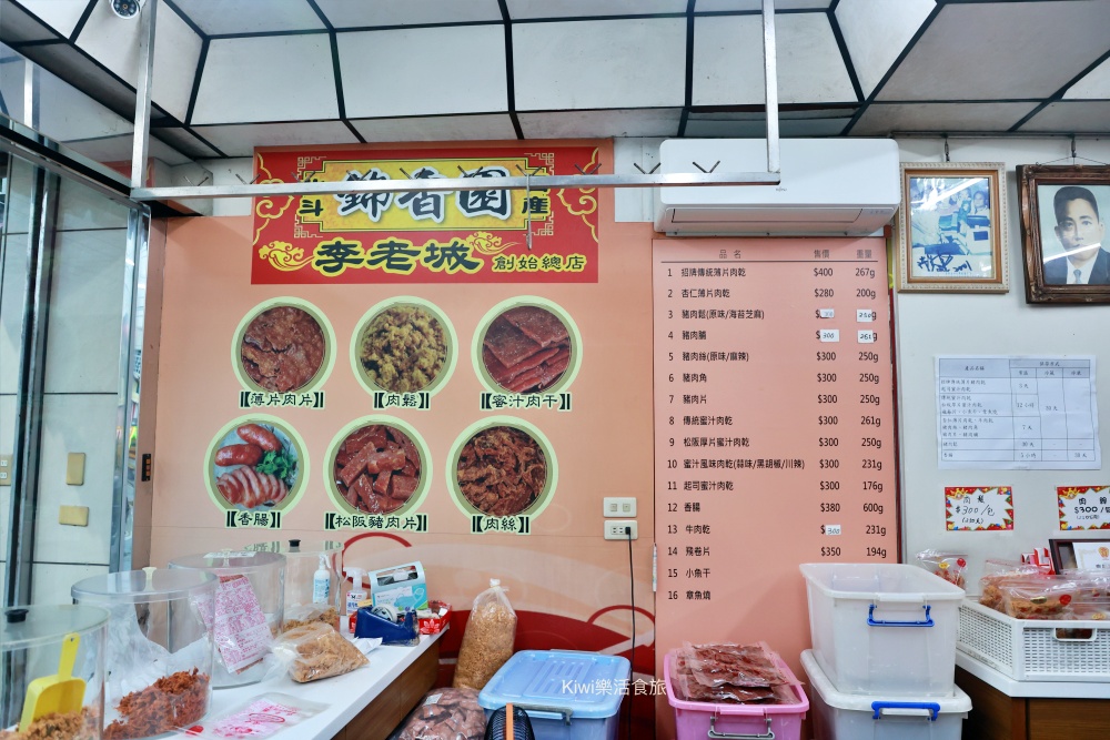 彰化伴手禮推薦老店,李老城肉脯店(錦香園)價目表都在上方,不用擔心有任何價格上的糾紛,店裡生意也很好,但大姐也是會跟我們介紹商品。