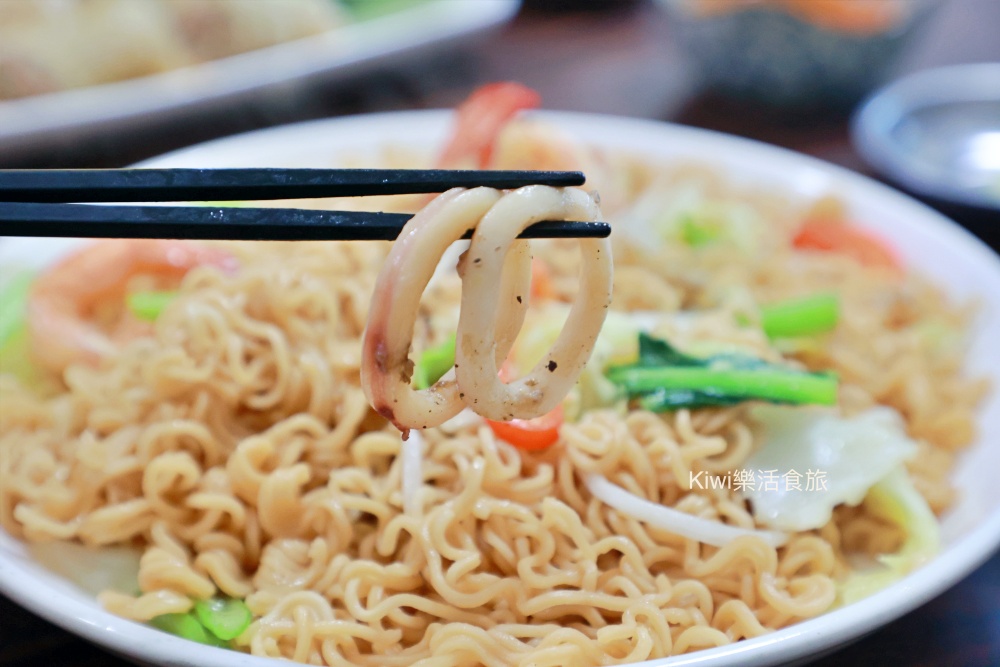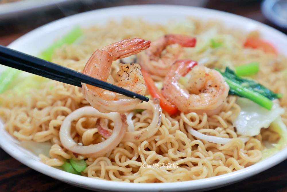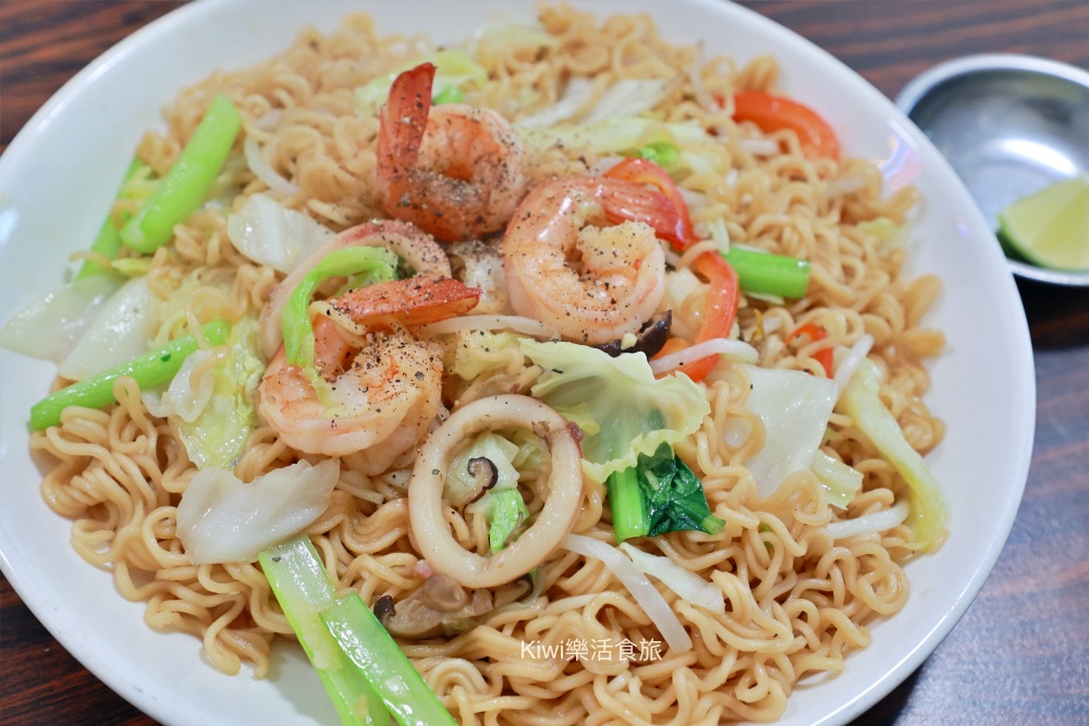 趁熱吃會發現海鮮炒泡麵炒得還不錯,熱騰騰的好吃,但也很建議可以來點檸檬,有加成風味的香氣呦!