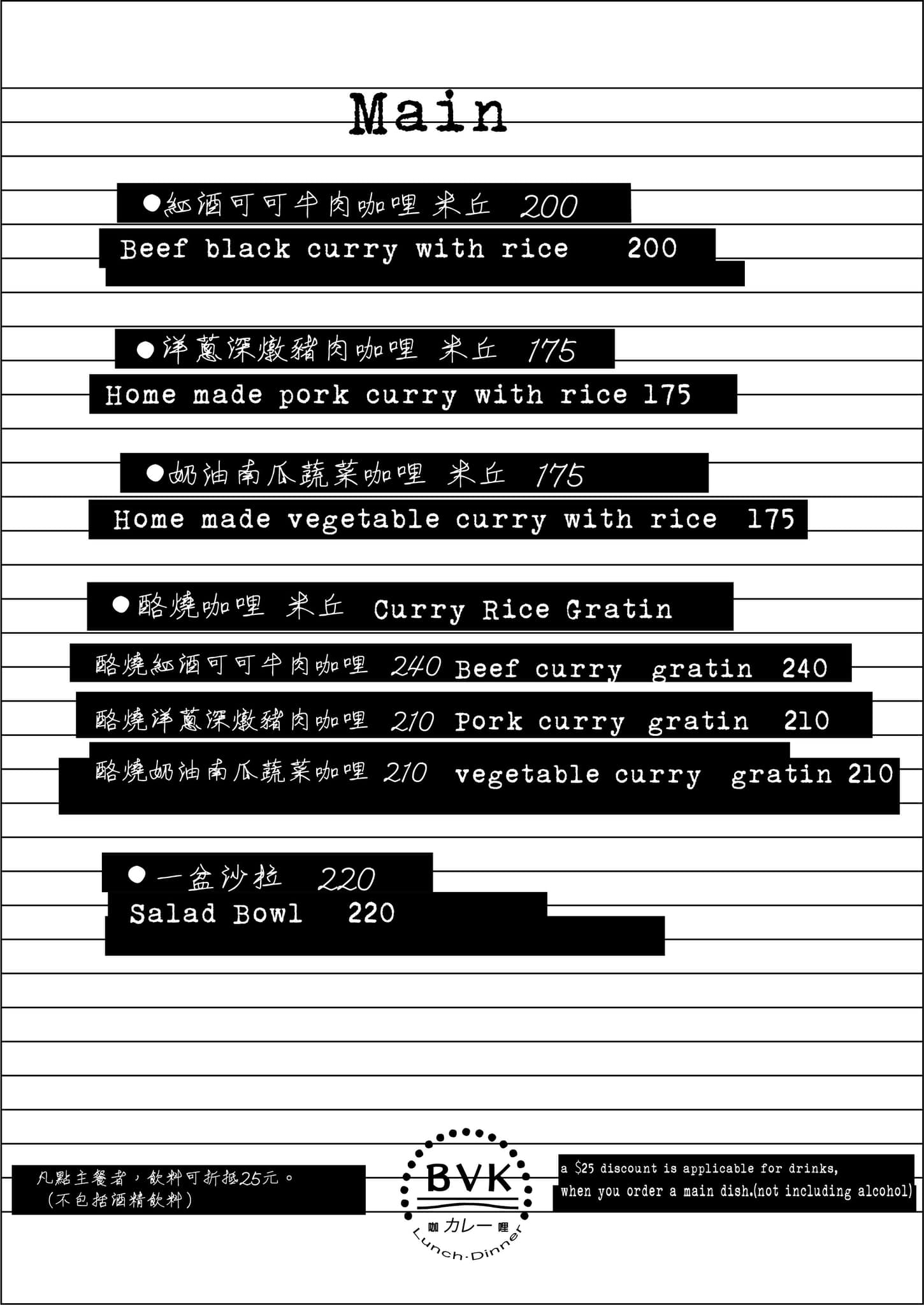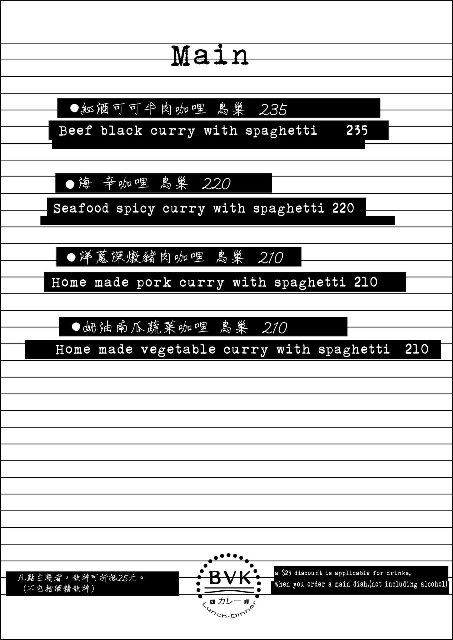 彰化市美食BVKcurry 必咖哩菜單MENU