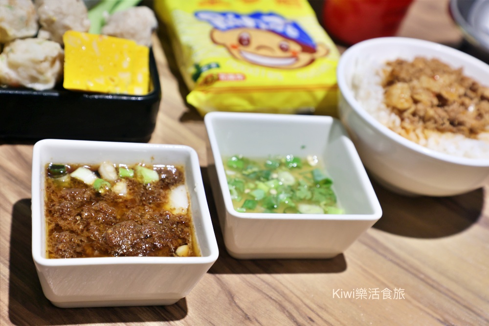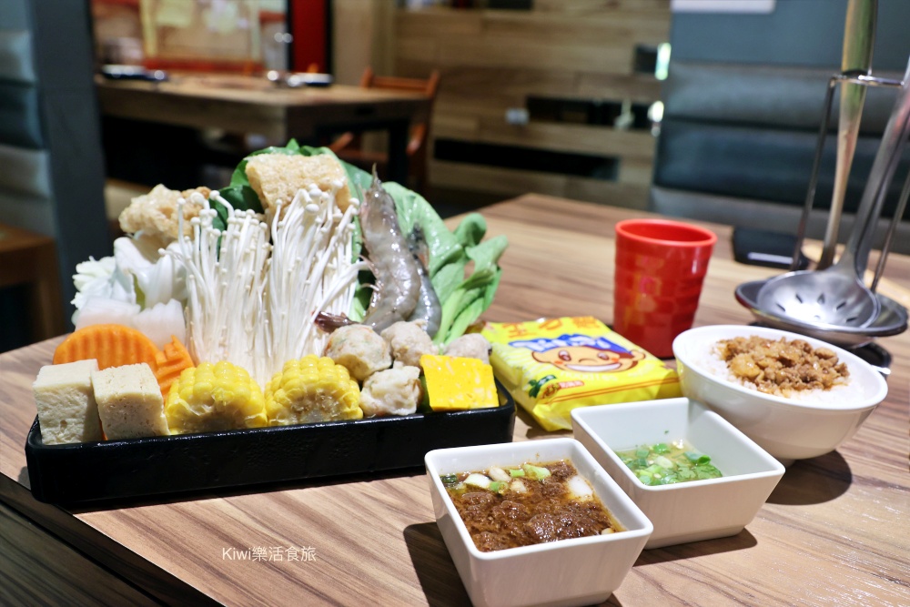 湯底是大骨湯、泰式咖哩湯、US板腱牛兩份、蔬菜兩份,泰式肉燥飯、王子麵。