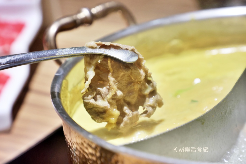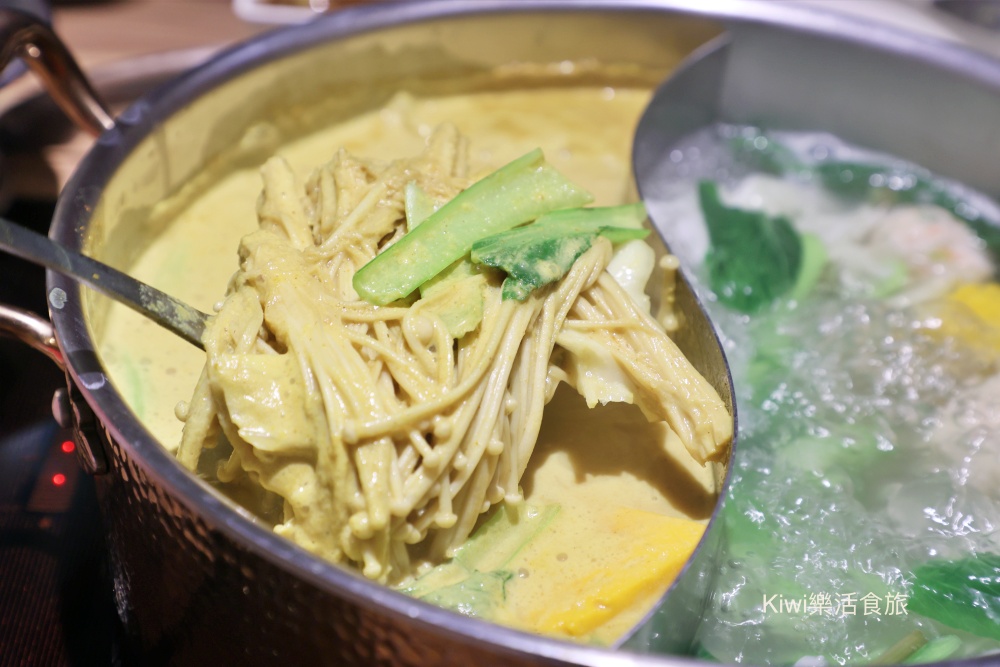 湯底是大骨湯、泰式咖哩湯,兩款湯頭清清淡淡,泰式咖哩味道有一點甜味不過香氣濃厚,加入什麼樣的食材都好吃,我很喜歡。