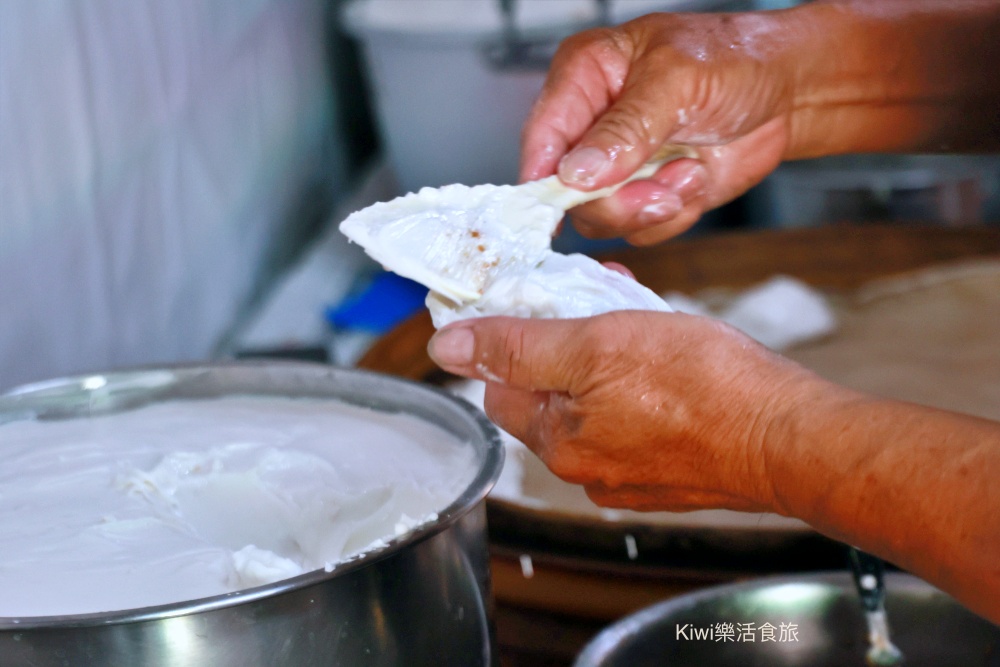 攤子前大大得蒸籠是將肉圓蒸熟,旁邊則有人員在包肉圓,新鮮度完全看得見。