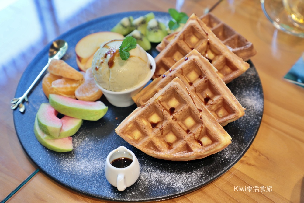 彰化二水美食推薦sweego水水果饌體驗館的鬆餅尚有當季水果,很不錯吃。