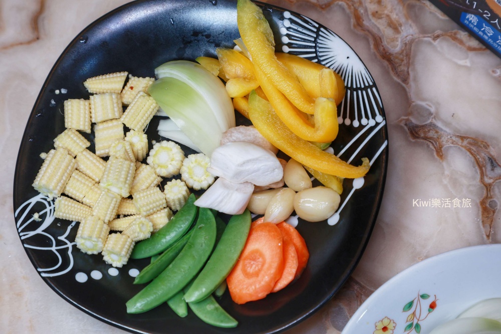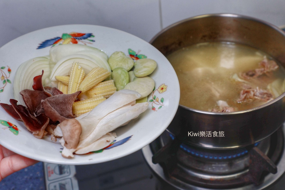 網路無國界,看見IG上面的網紅,因而這樣子煮!我們同樣將黑蒜頭雞湯倒入加熱,天啊!滿滿雞肉給的也太大方了~等鍋熱到半途中,kiwi就將蔬菜丟入煮,接著蔬菜熟就直接換到大碗中。