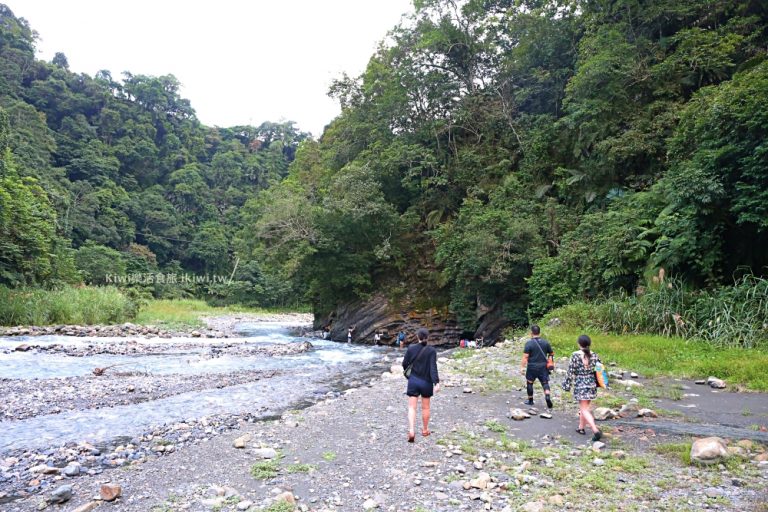 湍急的溪流與Kiwi在網路搜尋前兩年拍攝的照片有些不同,據說每一年泡湯的地方可都是會移位的喔!不少人會將四輪傳動的車子開下河床,在野溪旁烤肉露營,也是一個趣事,不過下雨天或者看見溪水暴漲,強烈建議要快速離開現場。
