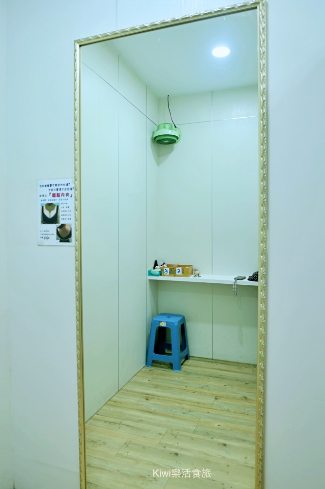 進入更衣室,專業人員就會為您一對一專人服務,在店裡建議預留一小時的時間,建議可以先打電話預約!專業人員會先幫我測量上下胸圍,也會先看我的骨架、身型、胸型,接著再測量胸圍與計算罩杯,解析後我有圓肩、大小胸、肋骨突出、副乳的部分,所以穿著內衣也需要從右而左,再加以調整這樣才可以曉得自己的缺點,穿著內衣時也可以多加注意。