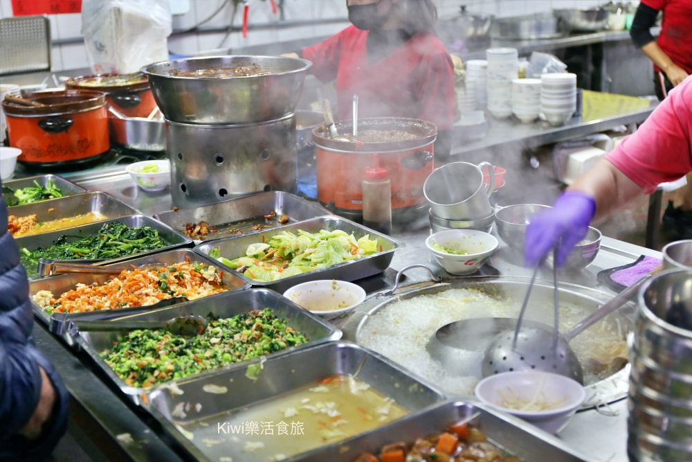 台中美食季宴李海爌肉飯這裡就好像飯擔一樣,來往人潮多,排隊人潮也不少,店裡人員很多,光看上方的菜盤又一盤的菜就這樣陸續出爐又夾完。