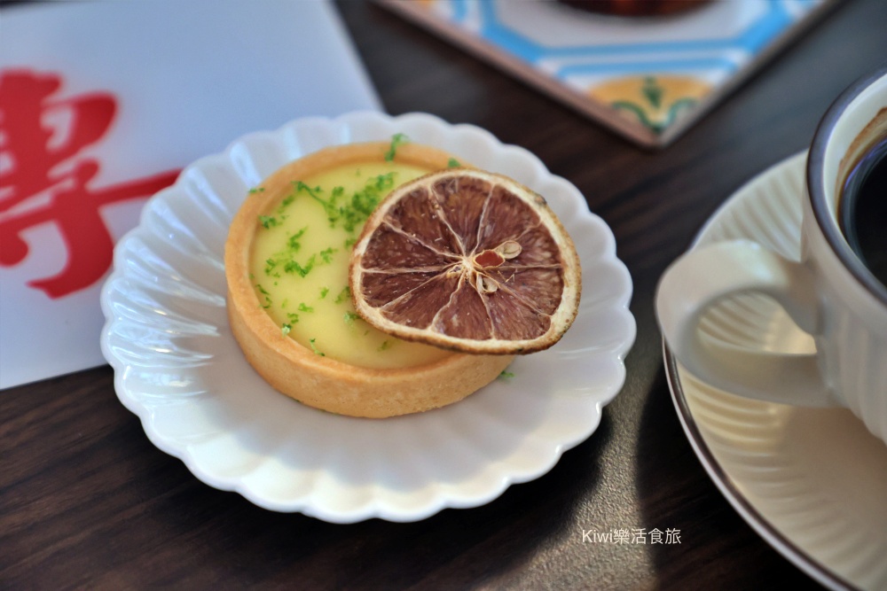 我們點了兩杯飲品跟檸檬塔,坐在裝邊的雙人座位很不錯。
