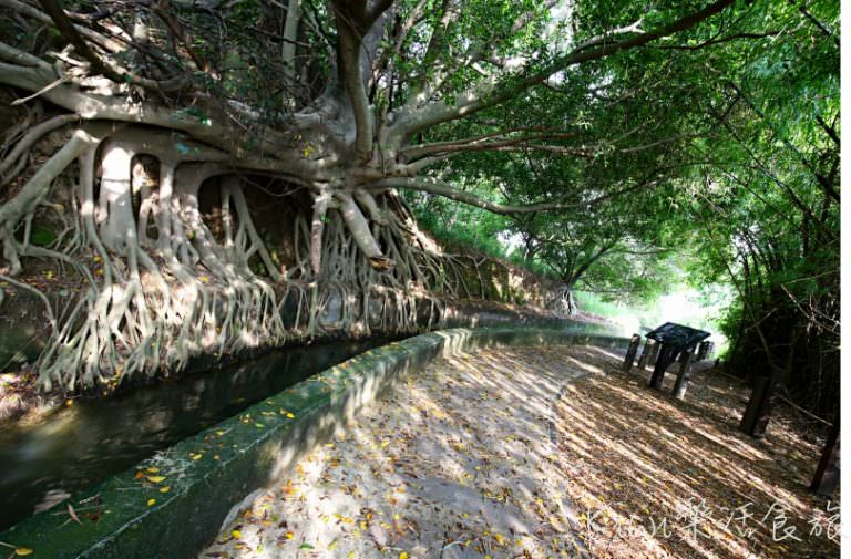 知高圳步道的枕木鋪設完成的知高圳步道即是沿著圳修建,身旁的榕樹一顆顆都很巨大,盤根錯節的已有百年的歷史,光是拍照就能讓人迷上它耶!