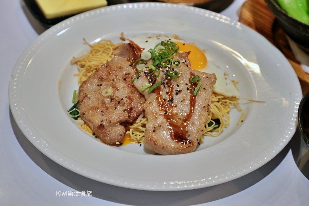 兩片醃漬過的豬扒還有一顆面帶微笑的太陽蛋,很療癒呢!