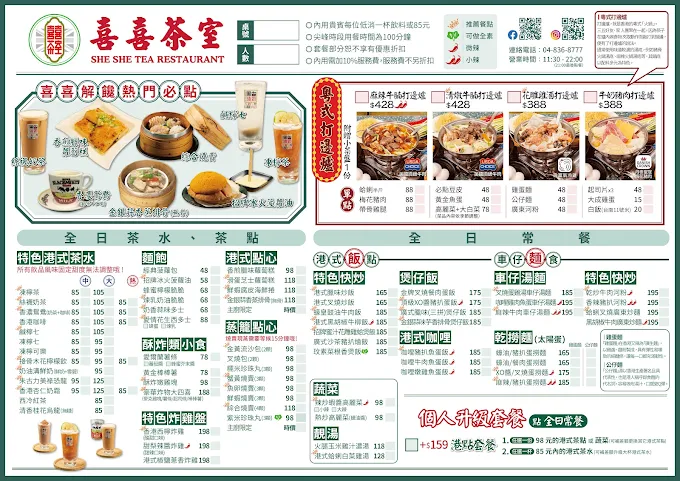 喜喜茶室裡很多的港式料理,想要吃燒賣小點、港式炒飯、菠蘿包、煲飯、咖哩、湯麵、撈麵都有。